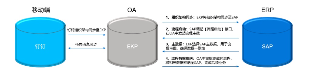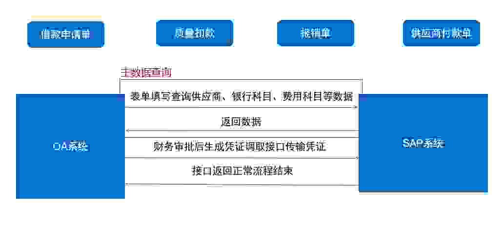 ? 流程數(shù)據(jù)推送:用戶在OA中發(fā)起并進行審批,流程審批通過后調(diào)取SAP接口將相關(guān)數(shù)據(jù)推送至SAP,由SAP完成后續(xù)的業(yè)務(wù),比如訂單生成,憑證記賬等。