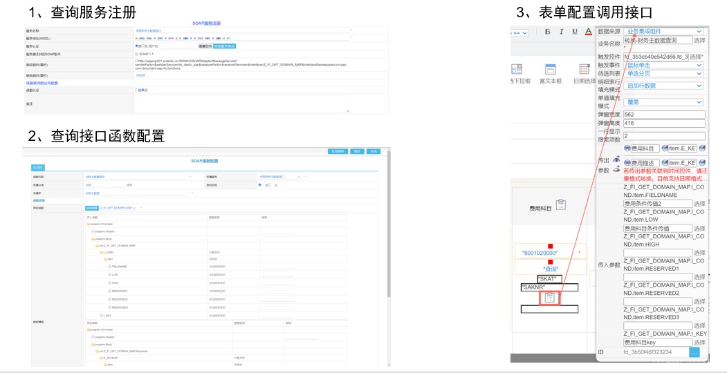 ? 主數(shù)據(jù):SAP提供【對應(yīng)主數(shù)據(jù)查詢】接口,EKP中通過TIC集成中心完成查詢接口的配置,并在流程表單中使用該查詢接口進行數(shù)據(jù)調(diào)??;