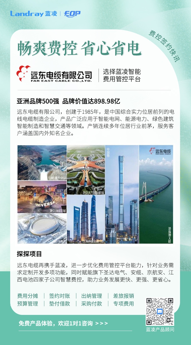近期,中國綜合實力位居前列的電線電纜制造企業(yè),遠(yuǎn)東電纜在與藍(lán)凌合作費用管控一期項目的成功實踐基礎(chǔ)上,再次選擇藍(lán)凌,升級費控平臺綜合能力,多方位助力業(yè)務(wù)發(fā)展。