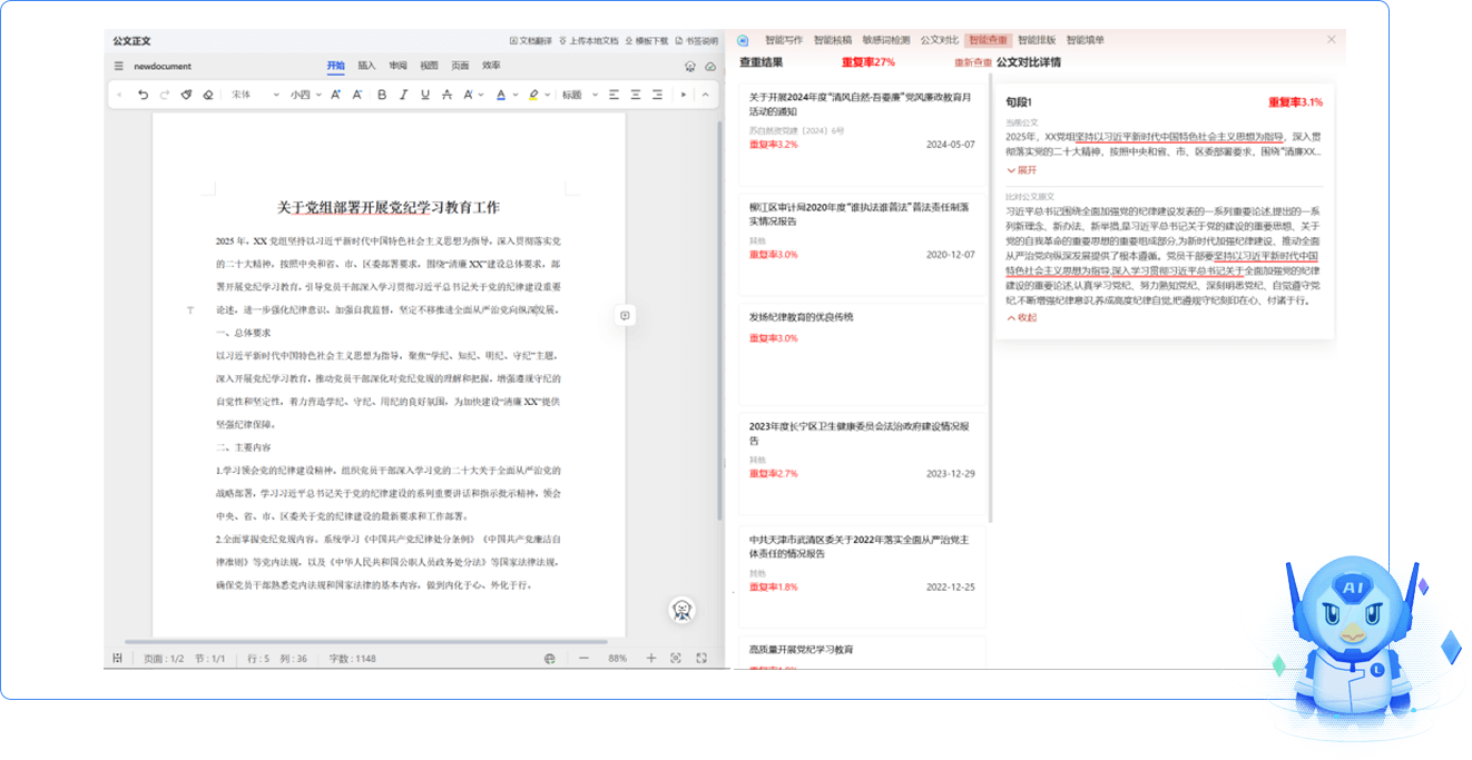 基于內(nèi)外部數(shù)據(jù)庫(kù),支持對(duì)公文內(nèi)容的多維度查重。