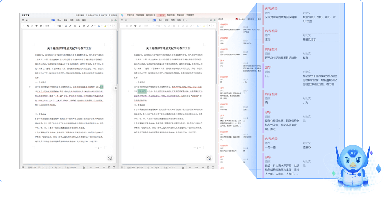 滾動(dòng)查看長(zhǎng)篇文檔比對(duì)差異,閱讀和修改差異內(nèi)容更方便