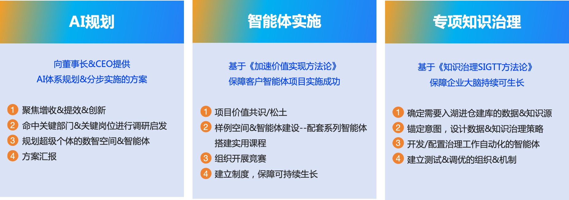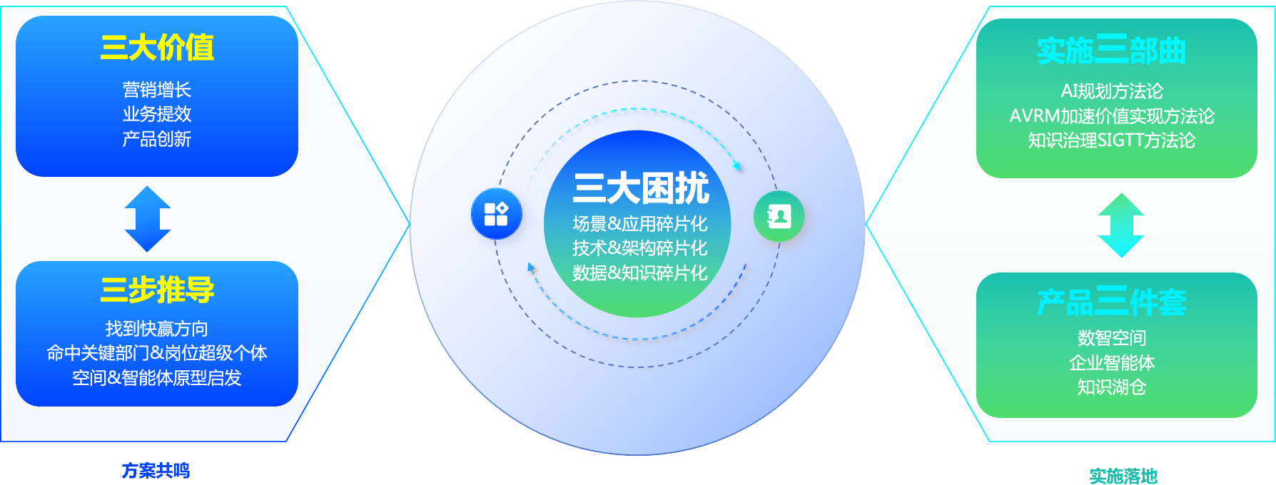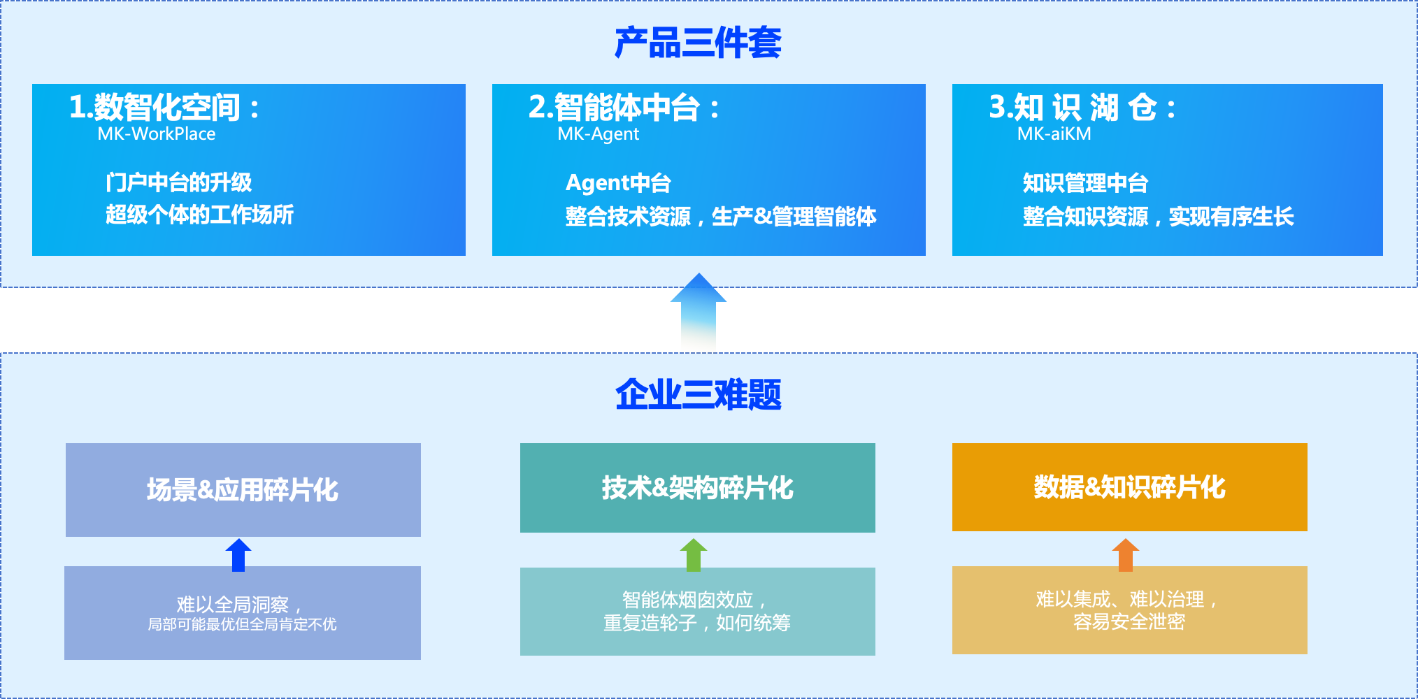 千行百業(yè)擁抱AI升級(jí),面臨“場(chǎng)景碎片化,技術(shù)碎片化,知識(shí)碎片化”的難題。企業(yè)AI成功,解決三大“碎片化”難題,不僅需要聚焦三大價(jià)值(增長(zhǎng)、提效、創(chuàng)新)+三步推導(dǎo)(找到快贏方向、命中關(guān)鍵部門&崗位超級(jí)個(gè)體、空間&智能體原型啟發(fā))的AI轉(zhuǎn)型規(guī)劃,也需要適配的產(chǎn)品三件套+實(shí)施三部曲。