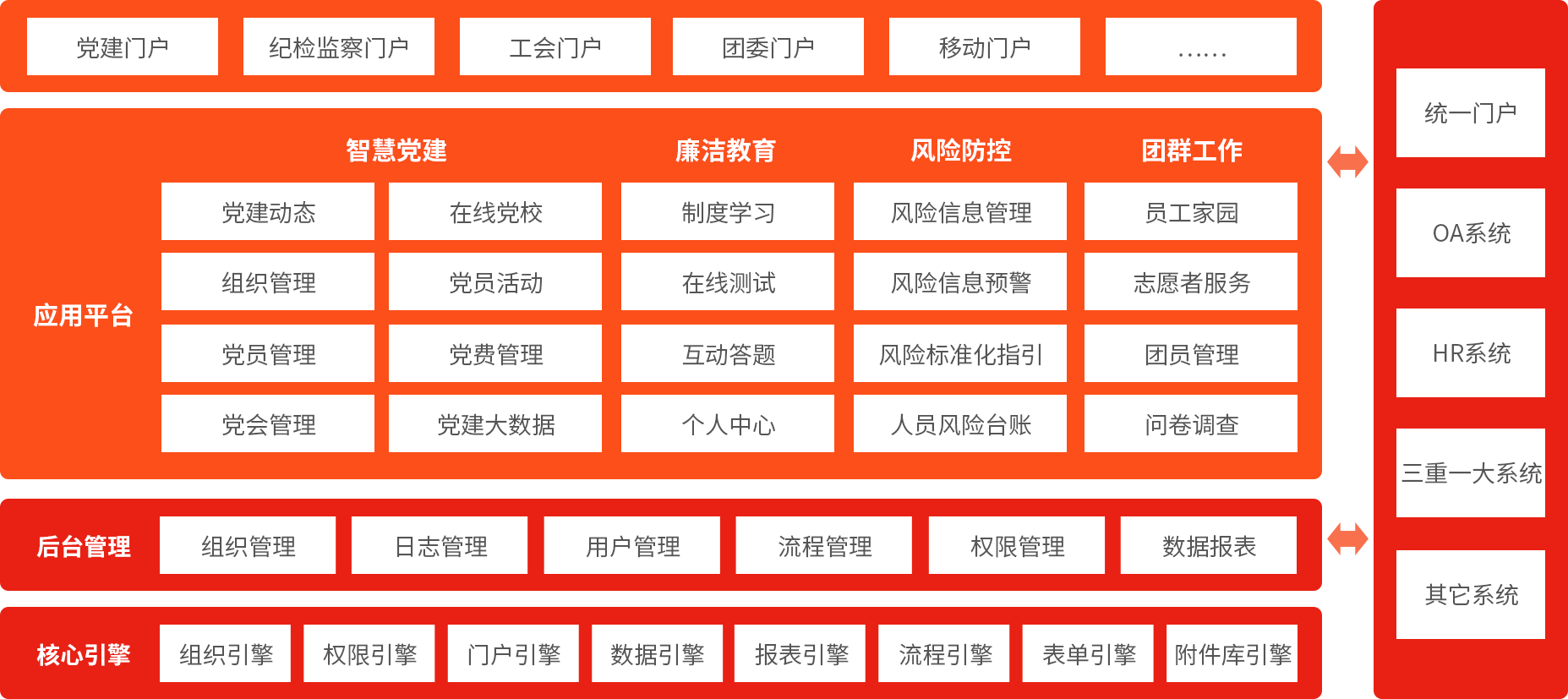 通過黨建新聞、黨委公文、組織管理、黨員管理、黨務(wù)管理、組織生活會議、在線黨校、黨建大數(shù)據(jù)等應(yīng)用,助力多級黨組織建設(shè),發(fā)揮基層黨組織戰(zhàn)斗堡壘作用,打造先進型組織。