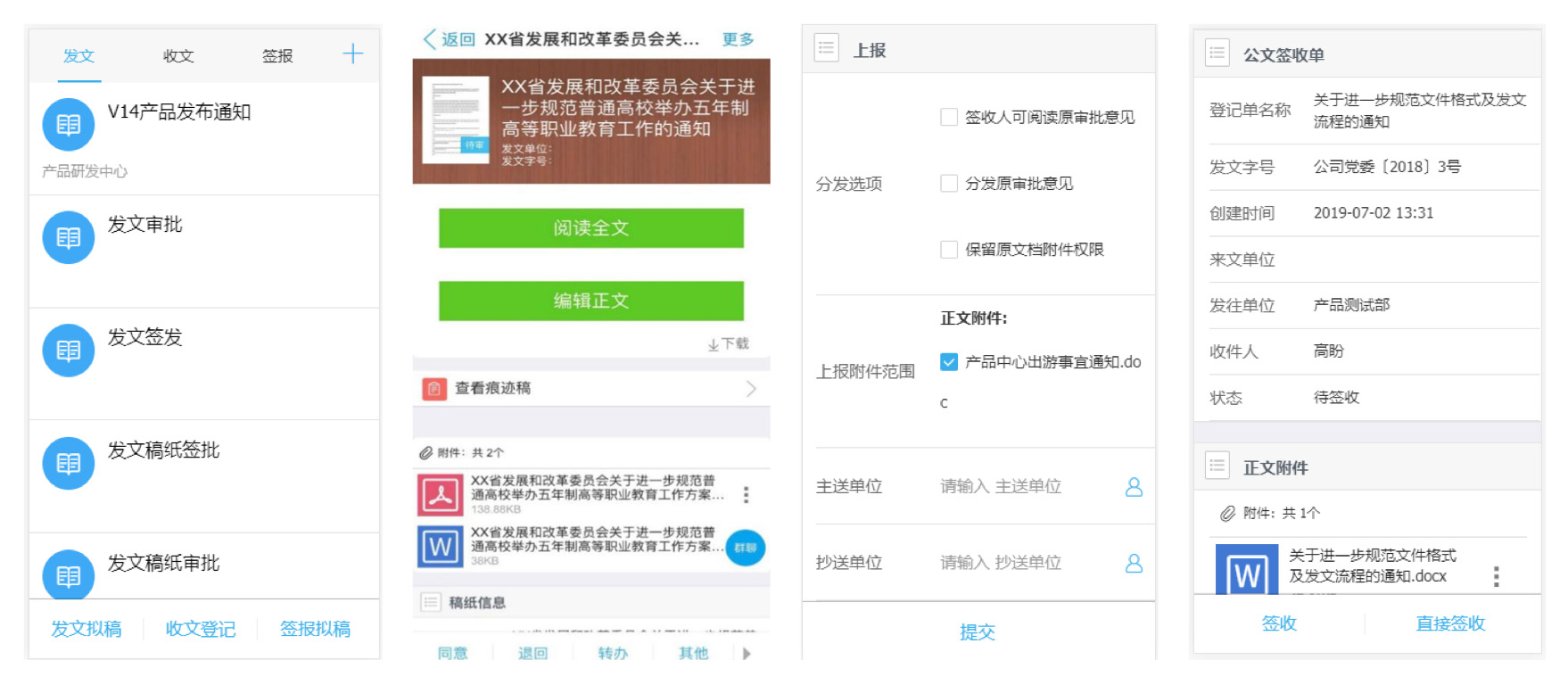 可在線對(duì)公文進(jìn)行審批、分發(fā)上報(bào)、簽收、編輯正文、收藏、傳閱等操作,附件、正文內(nèi)容編輯、批注輕松自如,領(lǐng)導(dǎo)外地公務(wù)出差,均可快速辦文。