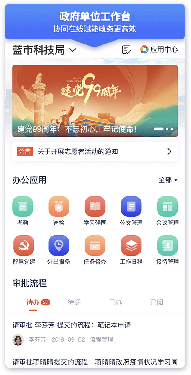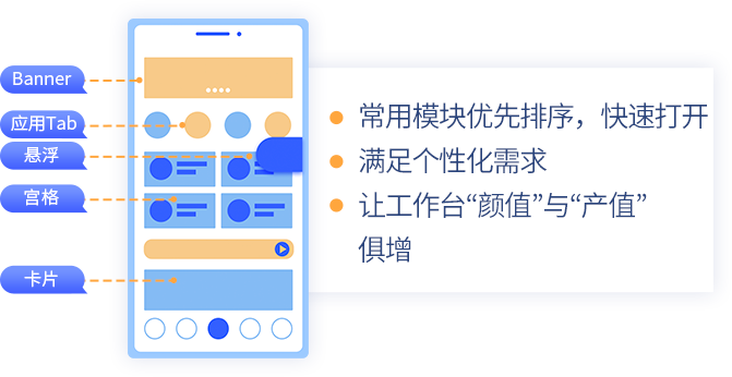 企業(yè)發(fā)展快,釘釘工作臺(tái)上應(yīng)用越來越多,但分類展示不合理,高頻應(yīng)用不突出,拖累辦公效率。開通高級(jí)工作臺(tái)后,發(fā)起流程、查詢信息更便捷了,組織提效明顯。