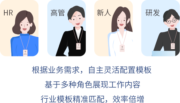 公司員工多,設(shè)計(jì)、銷售、采購、財(cái)務(wù)都有,不同崗位日常辦公應(yīng)用不一樣,開通高級(jí)工作臺(tái)后,基于不同角色,自由配置多類工作門戶,公司內(nèi)部協(xié)作更簡(jiǎn)單、溝通更高效,員工再多也不擔(dān)心。