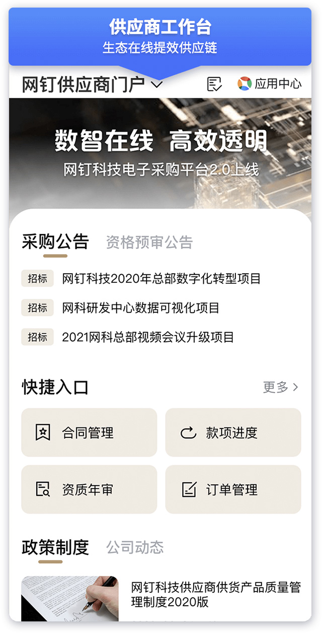 公司年輕,90后居多,希望將釘釘工作臺(tái)打造成獨(dú)具特色的“在線辦公室”,原工作臺(tái)難以滿足個(gè)性化需求,開通高級(jí)工作臺(tái)后,企業(yè)形象更鮮明了,界面美觀,操作便捷,全體員工效率都翻倍了。