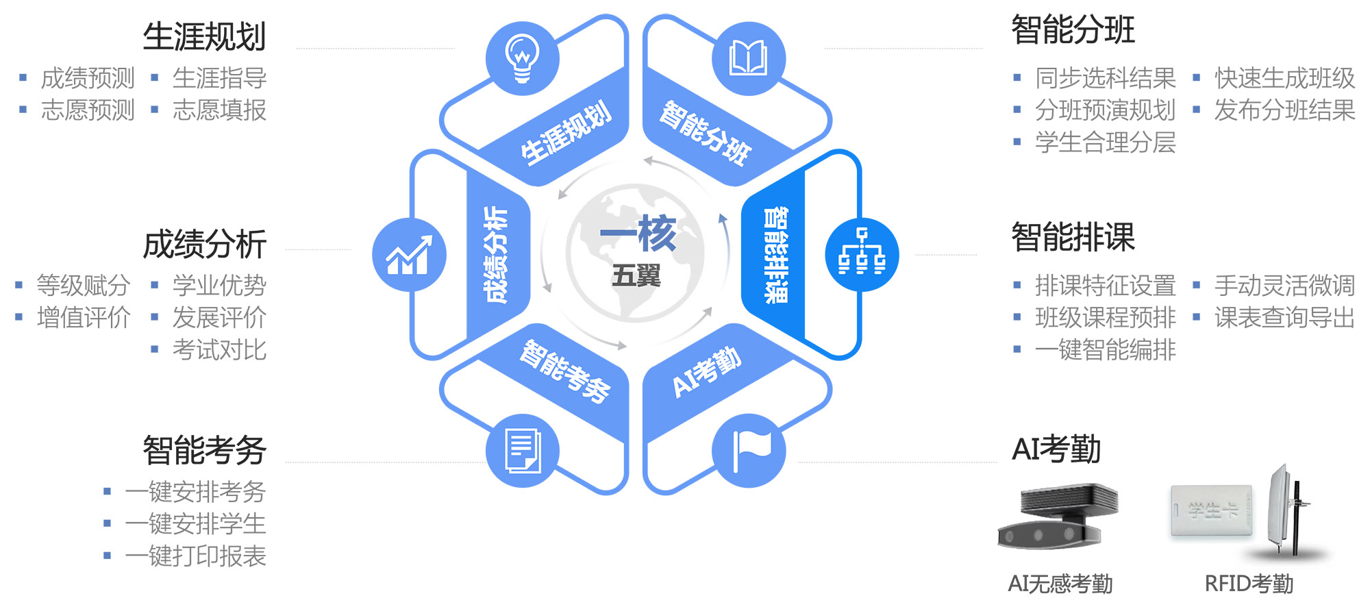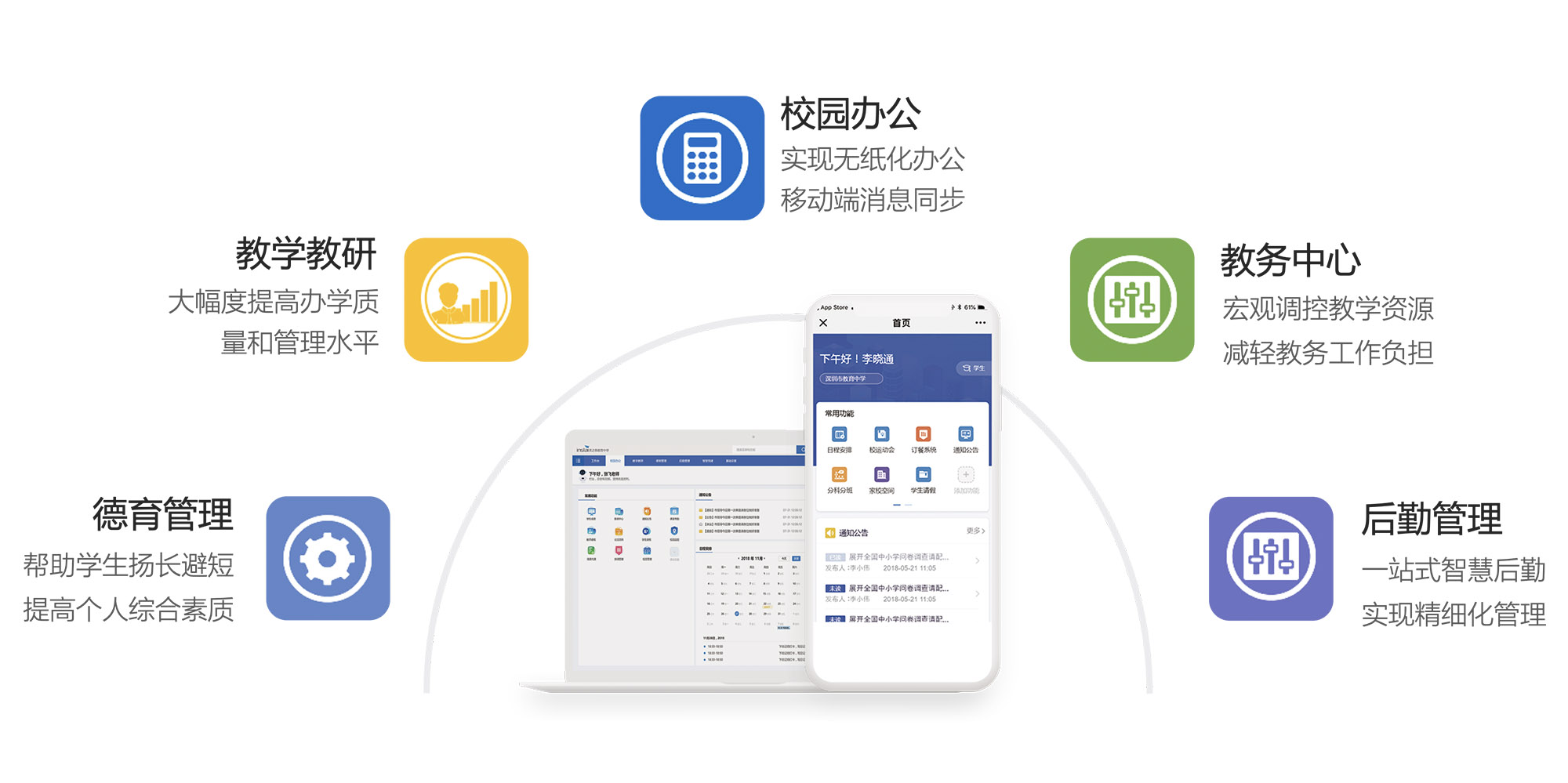 覆蓋學(xué)校管理層、職能部門所有日常工作,減輕管理者、教師、學(xué)生的負(fù)擔(dān),實現(xiàn)人、財、物管理及工作流程的全面智慧化