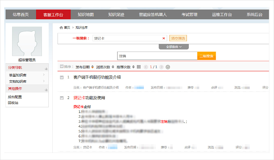 針對之前知識多采用文檔、詞條、附件等形式,分散儲存于客服系統(tǒng)、官網(wǎng)問答、excel等系統(tǒng)中的不便,南方基金攜手藍(lán)凌,通過基于客戶視角的知識梳理,打造了為公司客戶、內(nèi)部員工提供知識服務(wù)的知識庫,結(jié)合排序優(yōu)化等功能,讓知識定位快速精準(zhǔn)