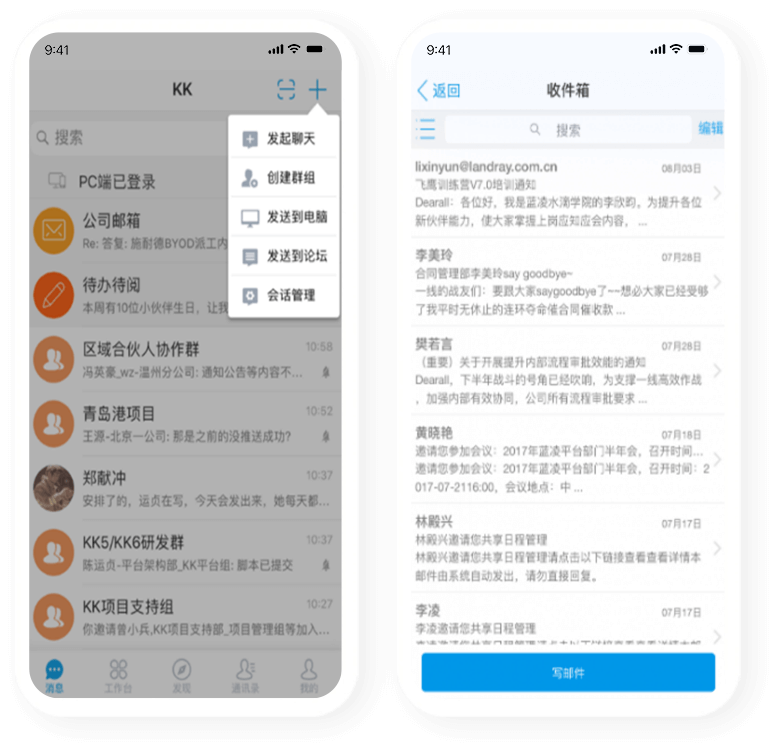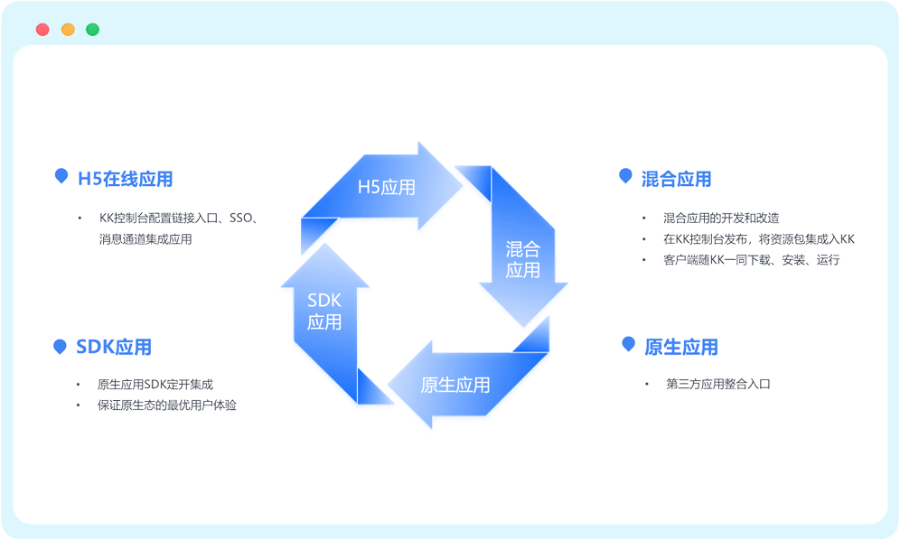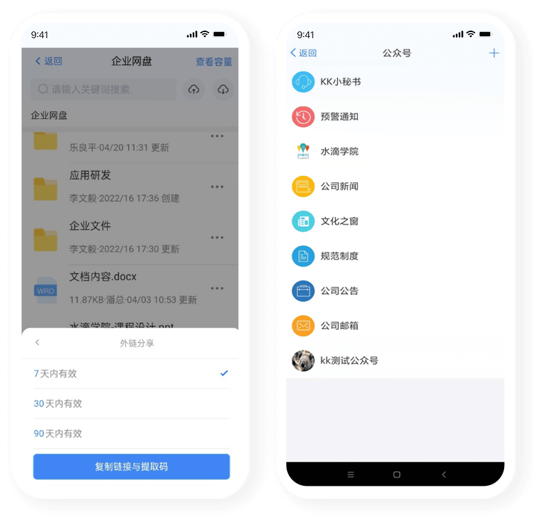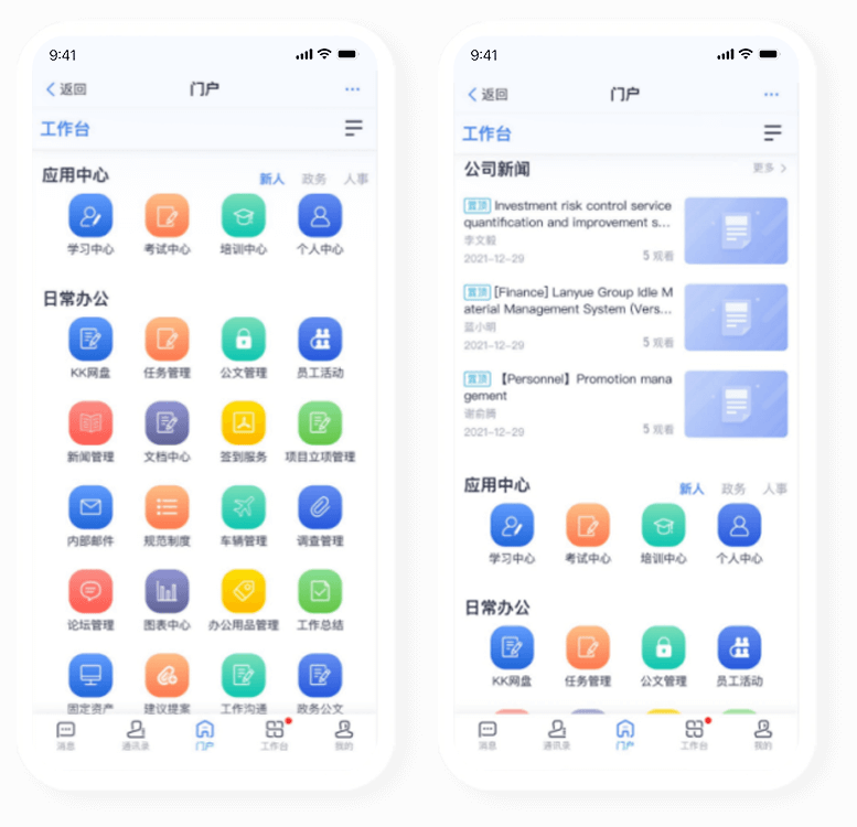 藍凌KK支持KK網(wǎng)盤、在線文檔,助力知識共享與協(xié)作;企業(yè)公眾號打造業(yè)務窗口,助力服務運,應用中心連接內外應用,可拓展,讓多場景移動辦以更敏捷。