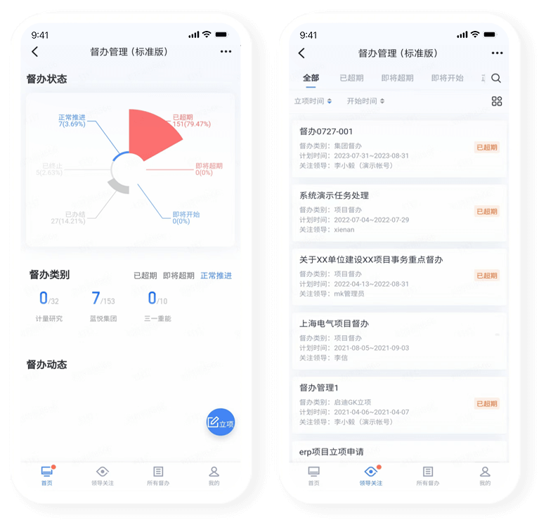 移動督辦工作臺,各項數(shù)據(jù)一目了然,從發(fā)起到考評,流程閉環(huán)提效督辦;全程在線,督辦任務執(zhí)行進度可控。