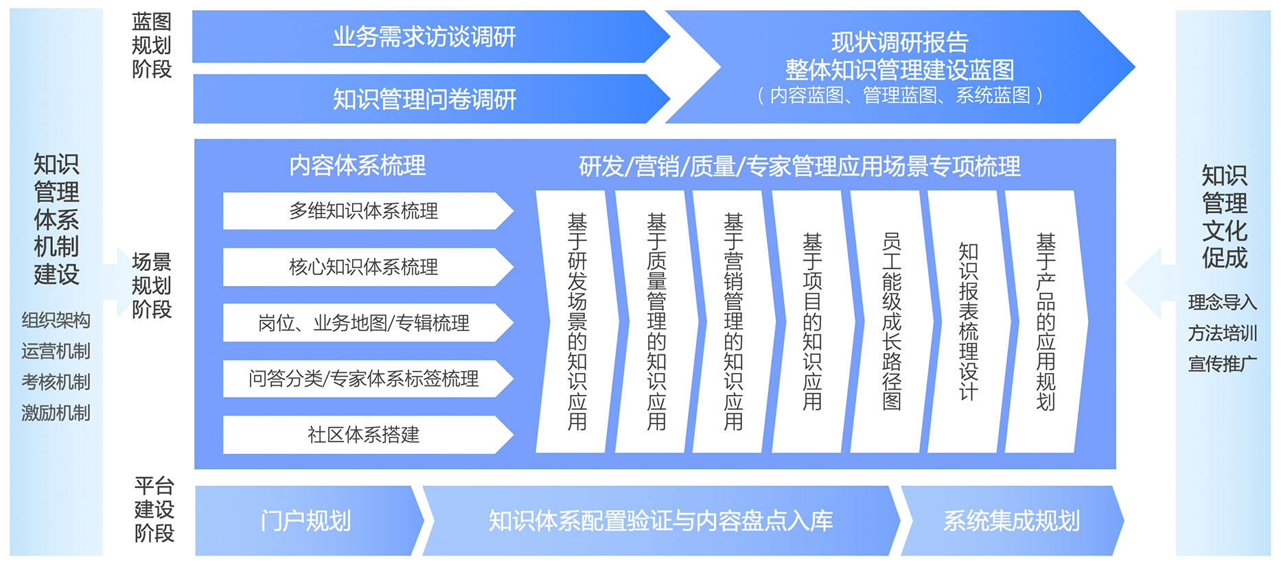 通過建設(shè)線上知識化團隊管理平臺,結(jié)合線下KM活動,借助同行協(xié)助、AAR等KM方法,將職能管理知識、項目管理知識等集中管理,打通知識沉淀、分享、獲取、收割、提煉全閉環(huán)流程,實現(xiàn)高效知識搜索、經(jīng)驗分享、案例收割等目標