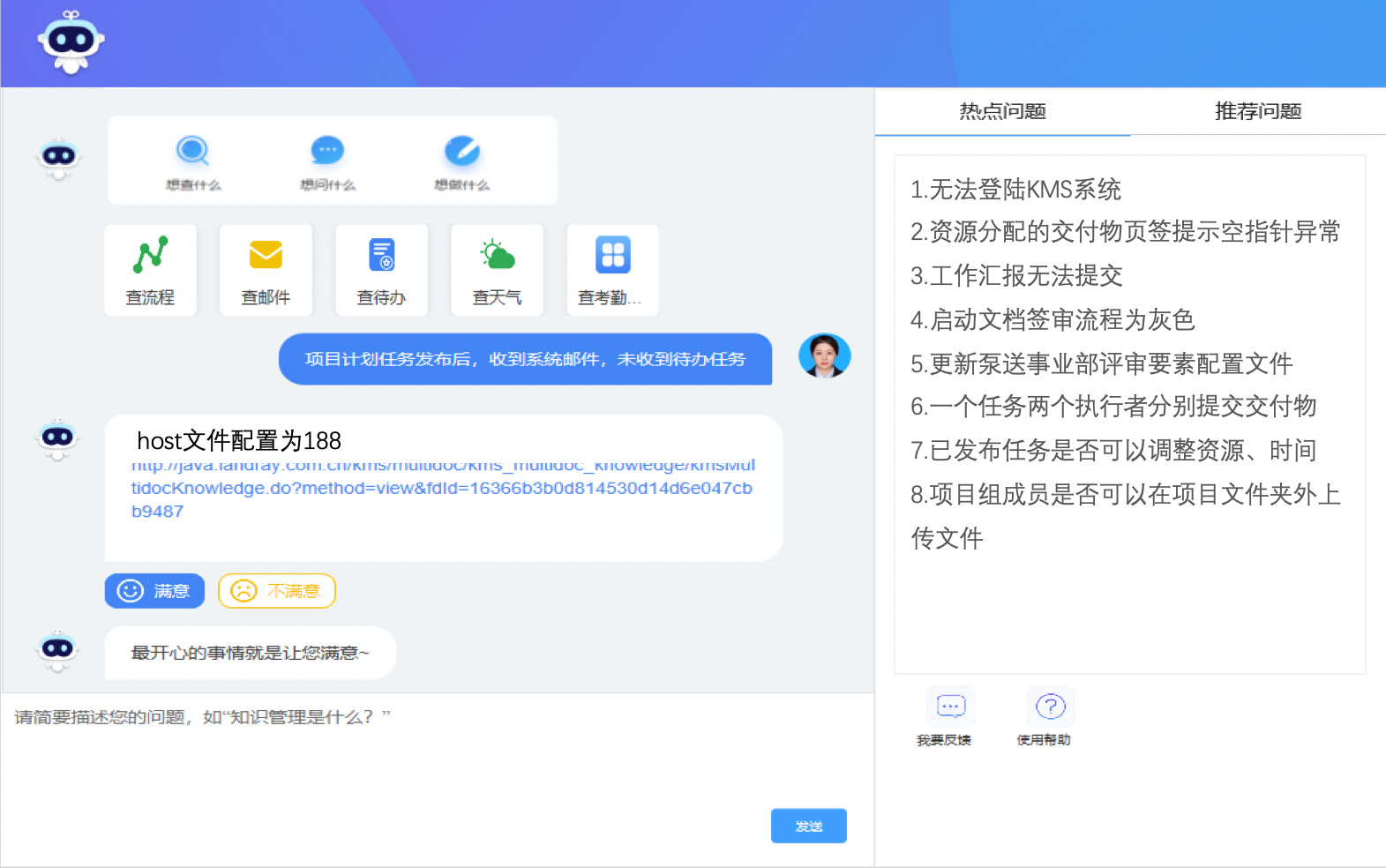 實現(xiàn)問題庫中常見問題快速精準回答,同時隨著提問數(shù)量增加,通過機器自學(xué)習(xí)與人工強化問題庫等手段,最終可實現(xiàn)全面覆蓋的智能問答。