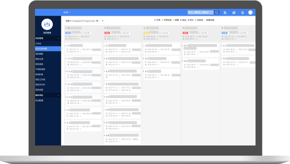 工作臺(tái)、項(xiàng)目地圖、項(xiàng)目計(jì)劃表可查看每個(gè)項(xiàng)目的進(jìn)度和具體項(xiàng)目的開發(fā)進(jìn)度,數(shù)據(jù)全面,支撐決策