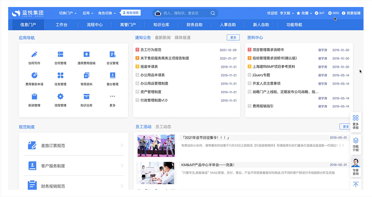 統(tǒng)一信息發(fā)布,讓公文、規(guī)章制度、企業(yè)動態(tài)、文化等快速通達集團及各子公司,全員共享。