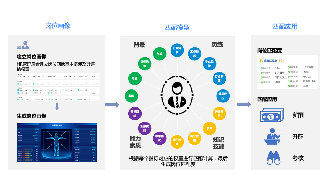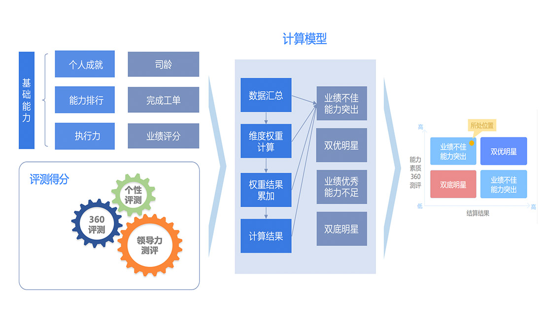 通過個(gè)人能力盤點(diǎn)、人才測(cè)評(píng)、人崗匹配評(píng)估等,為員工未來的加薪、職業(yè)發(fā)展、職業(yè)培訓(xùn)提供基本的參考指標(biāo)