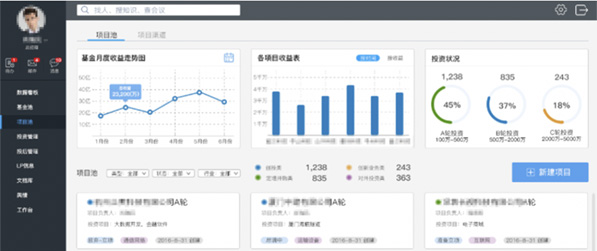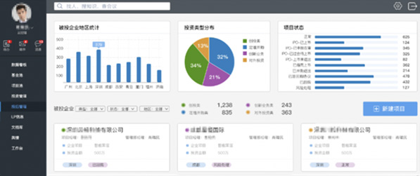 打造一體化投資管理平臺,將公司管理制度與流程、協(xié)同工作、知識管理結合,形成一整套內(nèi)部管理支撐工具,包括統(tǒng)一的基金及項目臺賬、風險管控與預警、標準化投資數(shù)據(jù)中心等報表統(tǒng)計分析等,讓業(yè)務效率提升明顯。