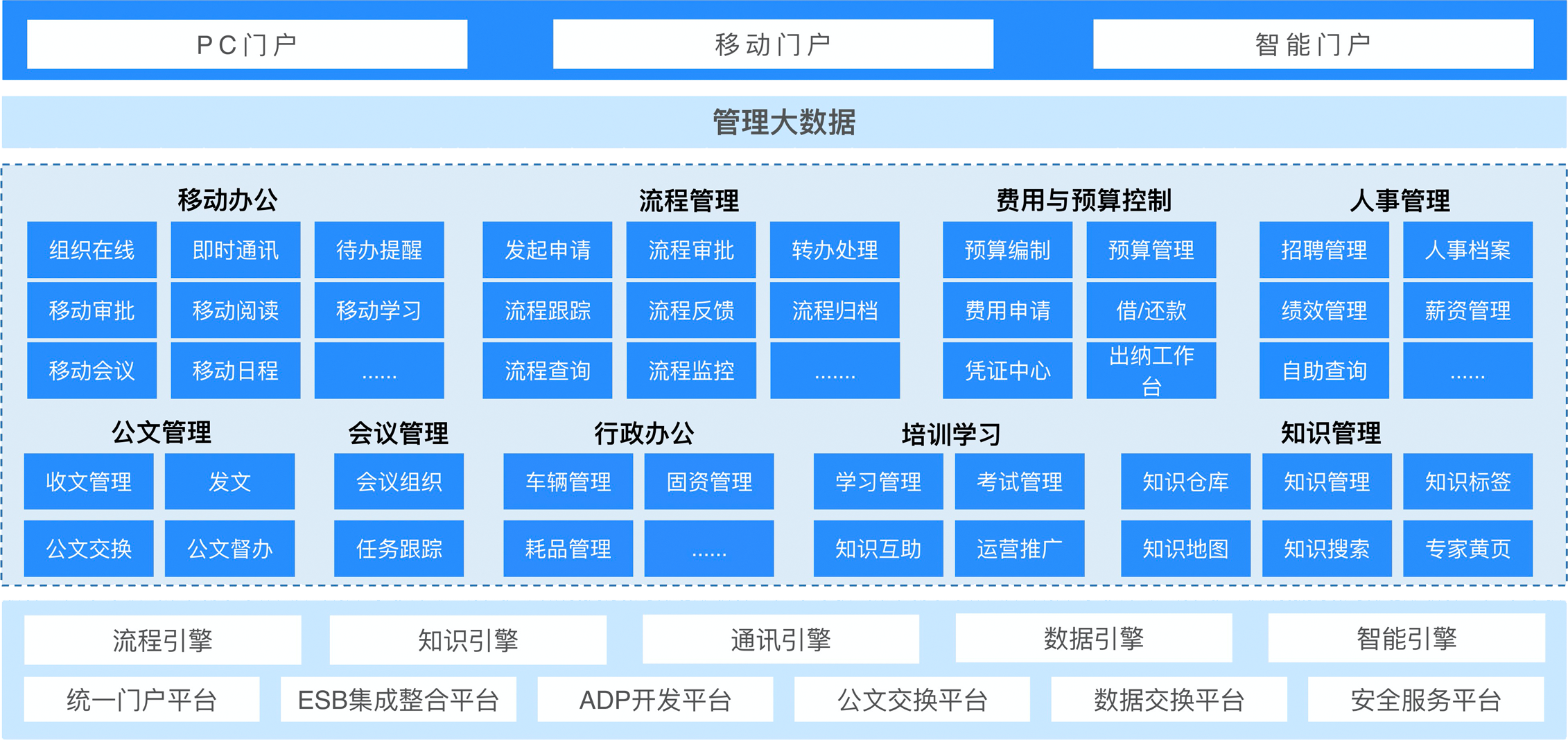 集團(tuán)門戶、移動(dòng)辦公、人事管理、培訓(xùn)學(xué)習(xí)
