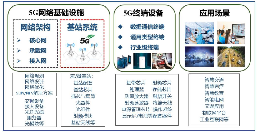 5G是當(dāng)前“新基建”的領(lǐng)銜領(lǐng)域,也已經(jīng)被高層定調(diào)為“經(jīng)濟(jì)發(fā)展的新動(dòng)能”,其建設(shè)內(nèi)容:機(jī)房、供電、鐵塔、管線等的升級(jí)、改造和儲(chǔ)備;5G 基站、核心網(wǎng)、傳輸?shù)鹊幕A(chǔ)網(wǎng)絡(luò)設(shè)備研發(fā)與部署;5G 新型云化業(yè)務(wù)應(yīng)用平臺(tái)的部署,與新業(yè)務(wù)以及各種垂直行業(yè)應(yīng)用的協(xié)同;圍繞5G 的工業(yè)互聯(lián)網(wǎng)新型先進(jìn)制造網(wǎng)絡(luò)環(huán)境。如物聯(lián)網(wǎng)云、網(wǎng)、端等新型基礎(chǔ)設(shè)施,圍繞車聯(lián)網(wǎng)的車、路、網(wǎng)協(xié)同的基礎(chǔ)設(shè)施等。