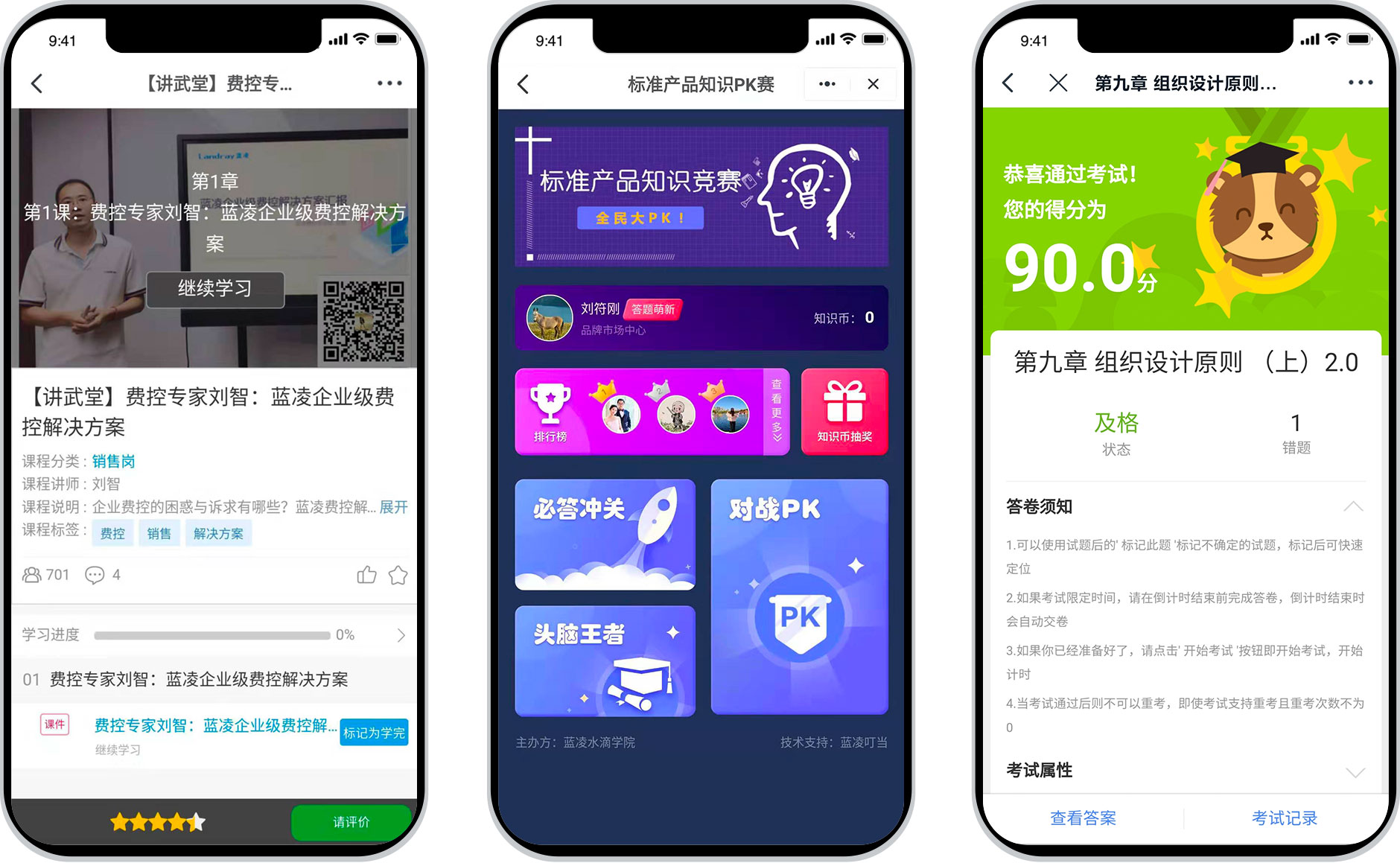 打開(kāi)手機(jī),海量課程隨時(shí)隨地學(xué)習(xí),賦能新人快入模、快上手;讓專(zhuān)家講堂無(wú)處不在,專(zhuān)業(yè)經(jīng)驗(yàn)發(fā)揮更大價(jià)值;知識(shí)PK賽輕松有趣,見(jiàn)效快