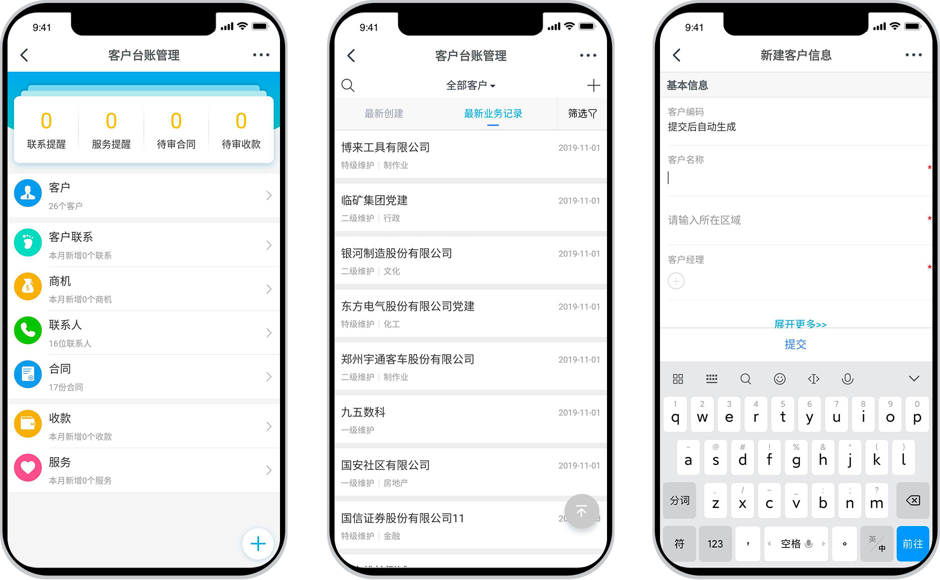 將企業(yè)客戶(hù)臺(tái)賬裝進(jìn)手機(jī)里,商機(jī)、客戶(hù)拜訪記錄、客戶(hù)合同、項(xiàng)目收款等隨時(shí)隨地關(guān)注,支撐企業(yè)更高效地獲客、簽單