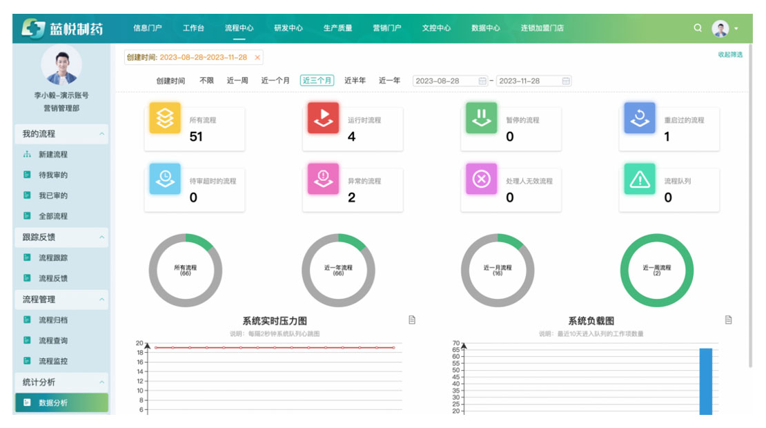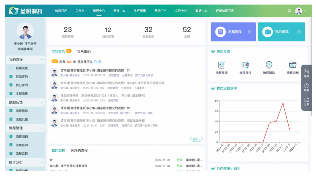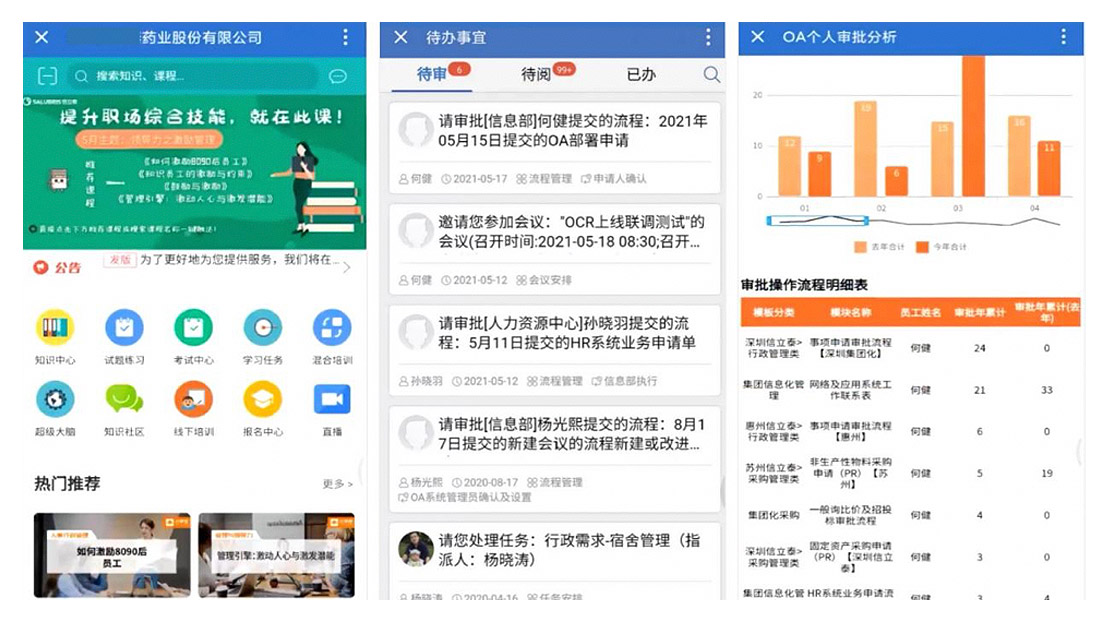 新OA平臺(tái)面向數(shù)千員工,不僅支撐“人財(cái)物事”協(xié)同,更集成ERP、WMS等10多個(gè)業(yè)務(wù)系統(tǒng),提效業(yè)務(wù)協(xié)作;“信學(xué)堂”知識(shí)門戶,賦能新藥研發(fā)創(chuàng)新;針對不同業(yè)務(wù)流程、業(yè)態(tài)、子公司的流程分析,實(shí)現(xiàn)分級(jí)優(yōu)化提效與精細(xì)化管理