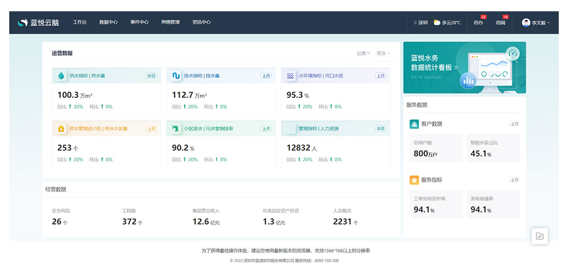 打造運(yùn)營管理駕駛艙,滿足水務(wù)集團(tuán)各級用戶的使用需求