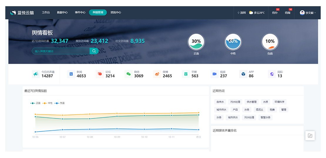 對互聯(lián)網(wǎng)資訊進(jìn)行收集,并通過總量、媒體聲量、輿情指數(shù)、熱詞、熱點(diǎn)等維度進(jìn)行分析展示,提供科學(xué)的輿情管理。