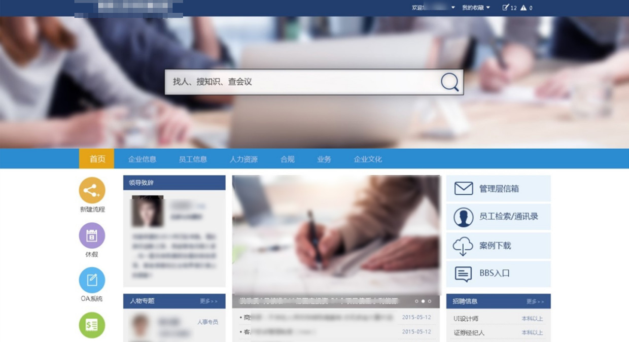 員工自助門戶,查工資、福利、考核等不用麻煩其它崗位,省力省心;基于藍凌OA,開發(fā)證照資質督辦、營業(yè)部風險日報等等幾十項功能,支撐業(yè)務更高效。