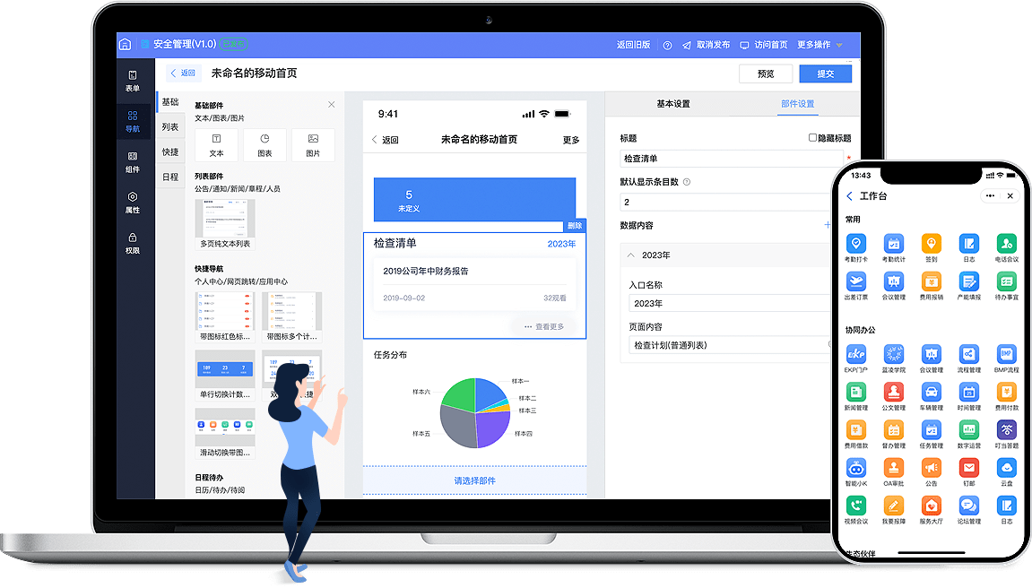 多角色門戶+“文會(huì)人財(cái)物事”流程+低代碼,